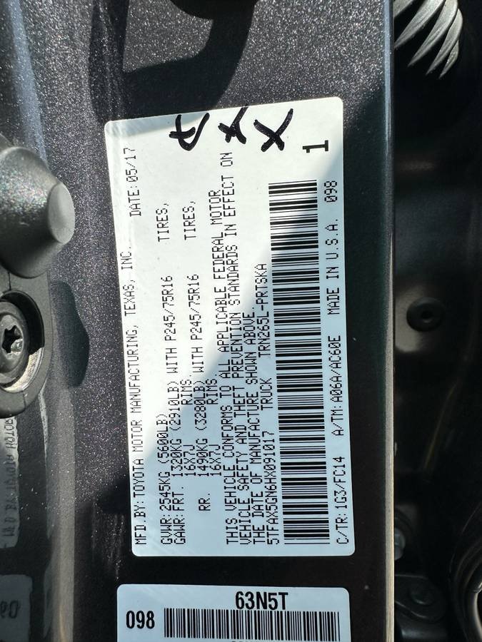 VIN: 5TFAX5GN6Hx091017